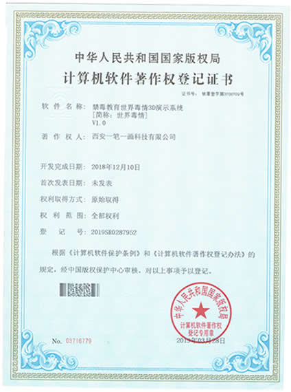 西安一筆一畫科技有限公司擁有《3C管理體系認(rèn)證》|《3A信用等級》|《展館雙甲資質(zhì)》《招投標(biāo)證件》|《展覽業(yè)10大影響力品牌》|《環(huán)藝雙甲資質(zhì)》|《禁毒教育拒毒心理測試系統(tǒng)軟著》|《飛奪瀘定橋歷史重現(xiàn)虛擬體驗(yàn)軟件軟著》|《禁毒教育世界毒情3D演示系統(tǒng)軟著》等等,是您可以信賴的展廳教育基地設(shè)計(jì)施工企業(yè)!